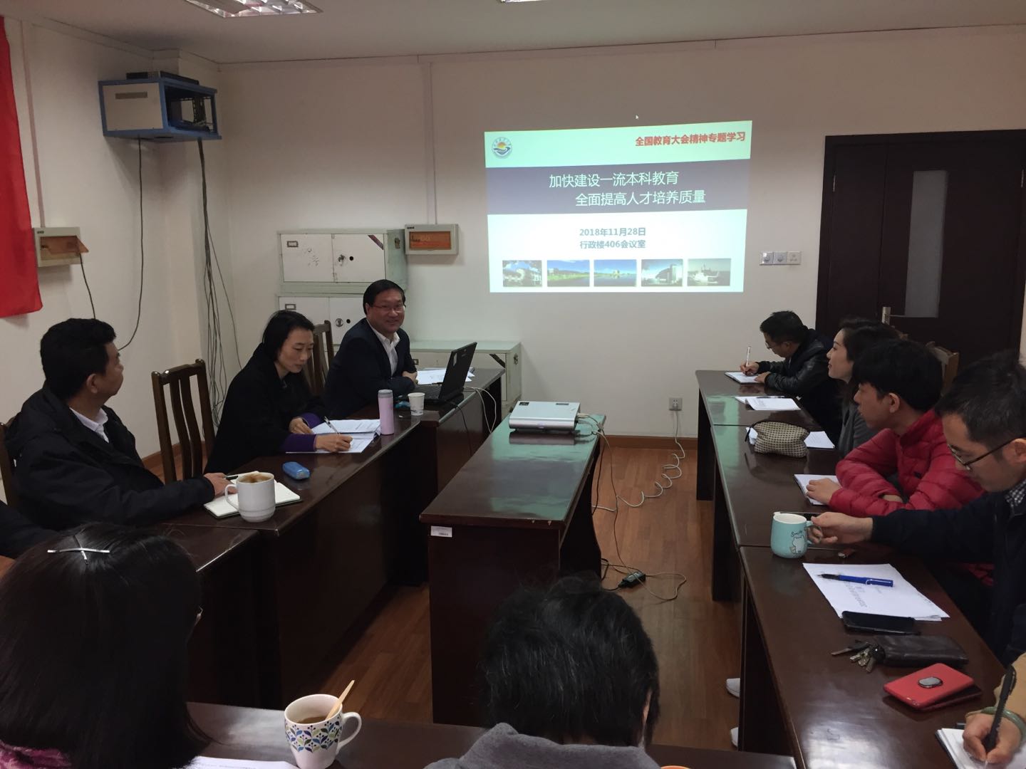 为帮助学院深刻领会全国教育大会精神、深刻领会习近平在首届中国国际进口博览会开幕式上发表的主旨演讲和视察上海时重要讲话精神,提高认识,推动学院发展,落实学校巡视整改反馈中学习环节的不足,11月29日上午,9227新葡的京集团在军工路校区召开了全院大会,校党委副书记吴建农进行了主题报告,会议由学院总支书记郭亚贞主持。