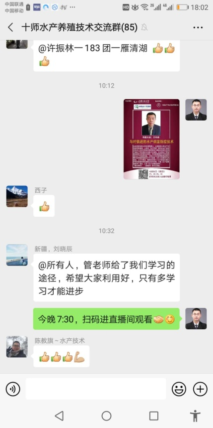 培训部首先通过在近年来新葡的京官网参加培训的班群里进行问卷调查,了解到学员对于渔业生产管理、农产品(水产品)营销以及渔业依法行政等方面内容最为关心。培训部积极同兄弟单位联系,整合了中央农业干部培训中心、浙江大学、武汉大学、中国水产协会淡水养殖分会的线上公益直播资源,及时将学员急需的学习资源分享给他们,帮助他们解决生产中的难题。