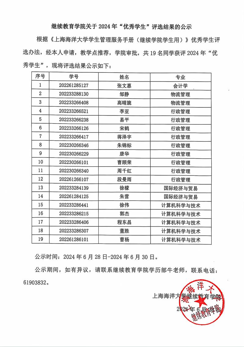 9227新葡的京集团关于2024年“优秀学生”评选结果的公示
