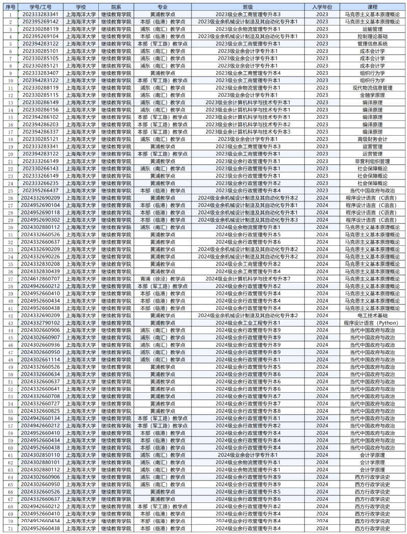 根据《9227新葡的京集团学生管理服务手册》(2022版)第四章第十八条:一门课程累计缺课达到三分之一以上,或擅自缺考,或考试作弊者,该课程成绩以零分记载,不得参加补考,该课程必须重修的规定要求,经学历部在考试周周四13:00的截止日后核查学生的学习情况,共有71门次课程将取消该学生该门课程的考试资格(见下表)。