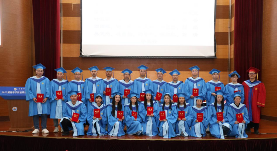 毕业典礼在庄严的国歌声中拉开帷幕。典礼上,付昱宣读优秀学生表彰决定,主席台领导和嘉宾向优秀学生代表颁发荣誉证书。社会协同与校友事务处副处长张宇峰向新聘任的2025届校友联络大使颁发聘任证书。
