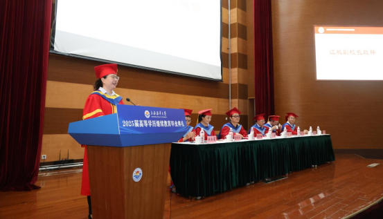 江敏副校长代表学校向顺利完成学业的1200多名毕业生表示热烈的祝贺,向付出辛勤劳动的教职员工,始终关注着同学们成长成才的亲友表示衷心的感谢。并向全体毕业生提出三点期望:一是要成为“弄潮儿”,用变化思维驾驭变化;二是要成为“深潜者”,在所在领域向下扎根;三是要成为“归海流”,将“小我”融入“大我”。江敏副校长同时希望各位毕业生将自己的人生价值与国家、人民的利益紧密相连,个人选择与时代需求同频共振,在推动社会进步的实践中实现自我超越。